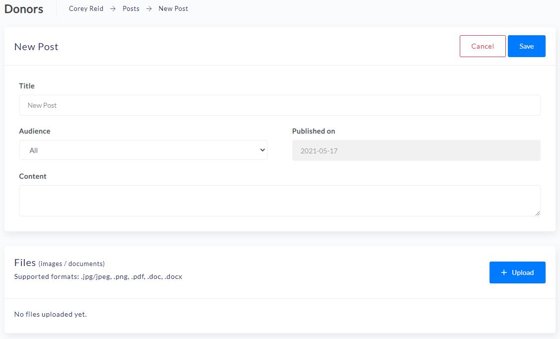 Select individual donors or beneficiaries related to a post that will allow for complete personalized content and messages, or select “All” if the content and update is general and pertaining to all the individuals that are a part of the donor to beneficiary connection.